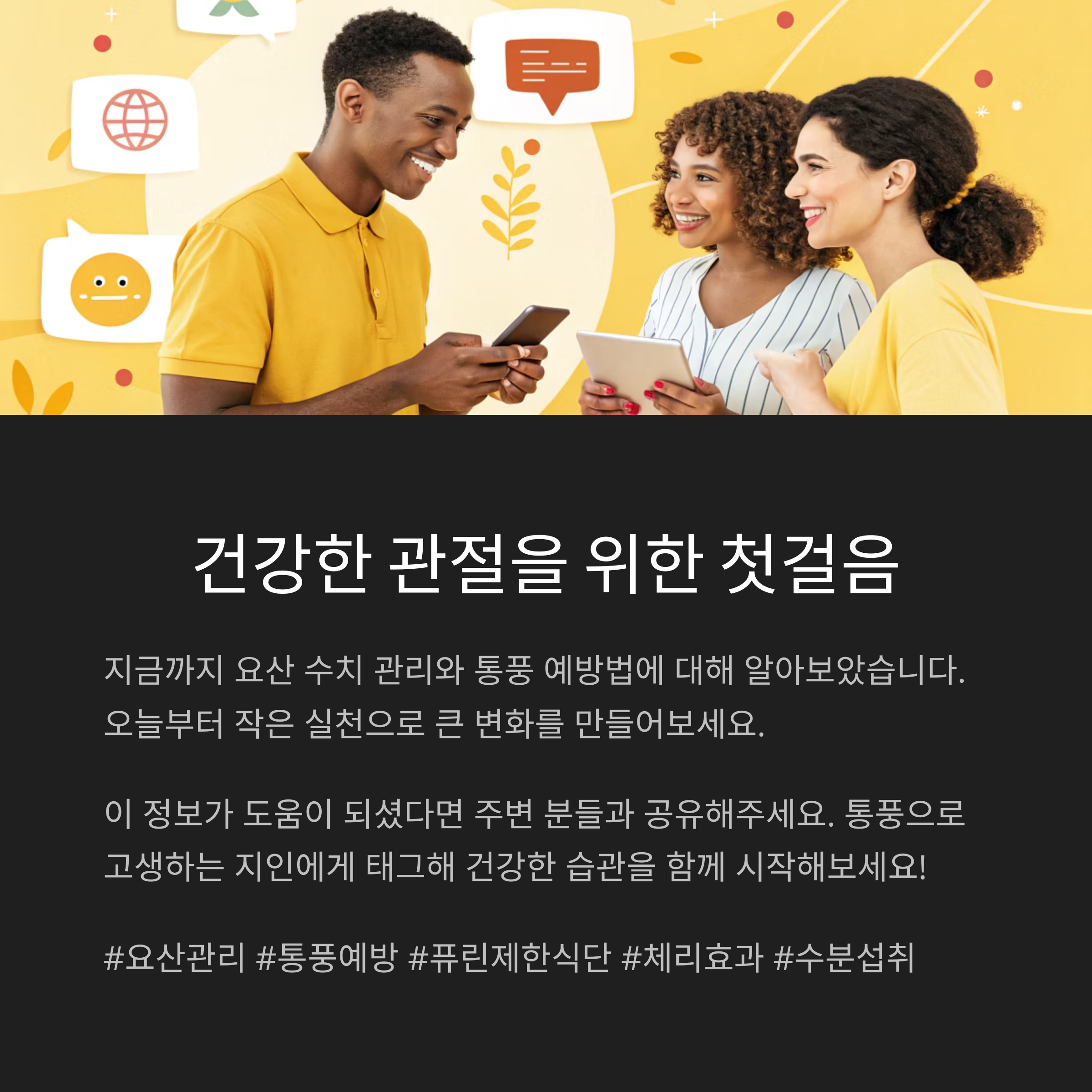 "생활습관 하나가 관절을 살리고, 신장을 보호합니다."